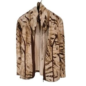 Carolyn Taylor Abstract Print Jacket Beige Brown Zip Up Size L