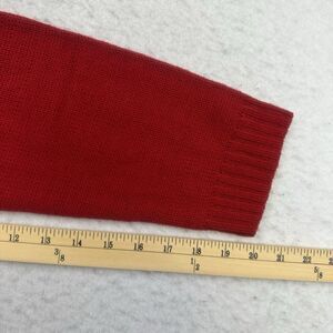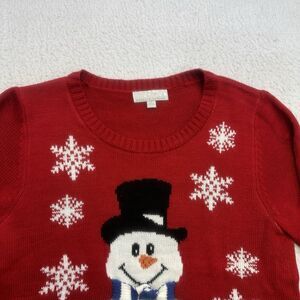 Carolyn Taylor Christmas Sweater XL Red White Snowman Snowflakes Long Sleeve. It is pre owned in good condition with some wear. No rips or stains. All measurements are approximate and done on a flat surface which can be seen in Pictures.