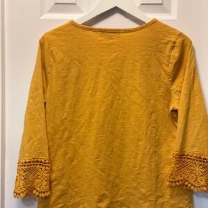Carolyn Taylor Golden Yellow Crochet Lace Peasant Top 3/4 Bell Sleeve - Size L