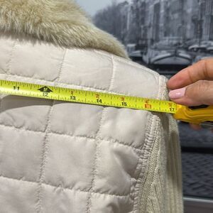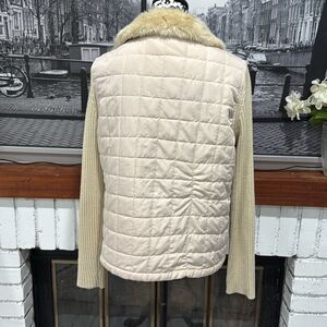 Carolyn Taylor Jacket XL Beige Ivory Cream Light Quilted Puffer with Faux Fur