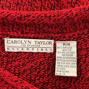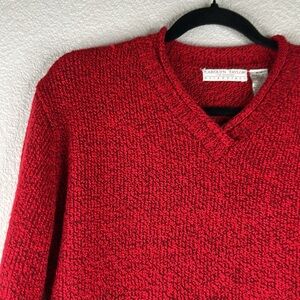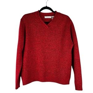 Carolyn Taylor Red & Black V-Neck Classic Long Sleeve Knit Sweater Size Medium