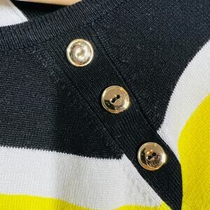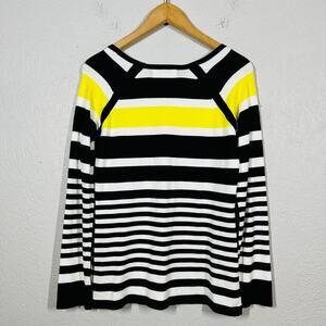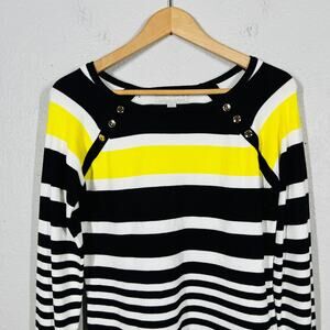 Carolyn Taylor Scoop Neck Knit Top Long Sleeve Stripe Casual Button Detail - S