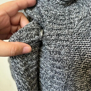 Cozy sweater with short sleeves that can be rolled up or down. Has two large snap buttons in the front