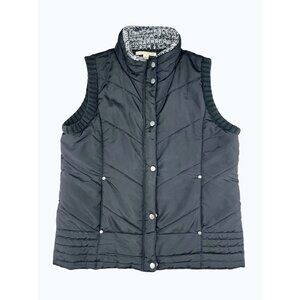 Carolyn Taylor Womens Quilted Black Puffer Vest W/ Knit Trim & Snap Buttons M