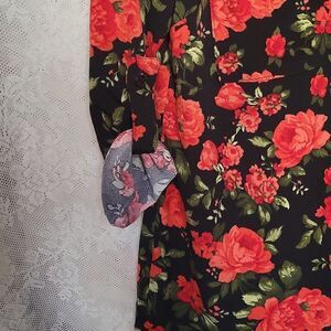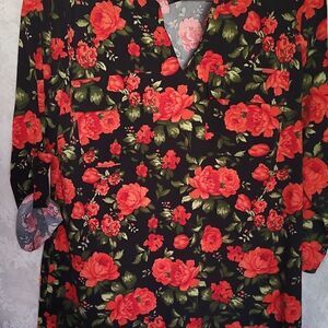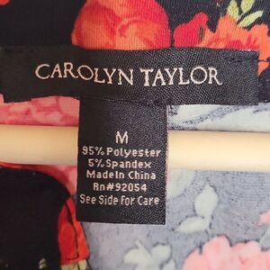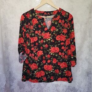 Carolyn Taylor "Carnation Floral" 3/4 Sleeve Roll Tab Blouse Size M