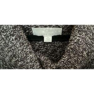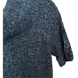 Cowl neck short sleeve sweater with leather look epaulette on sleeves. Black and grey patterned front. M 18” X 8.5” NWOT never worn.