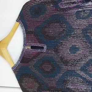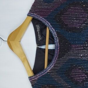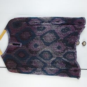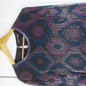 Carolyne Barton Purple Heavily Beaded Geometric Vintage Dressy Blouse Sz.L