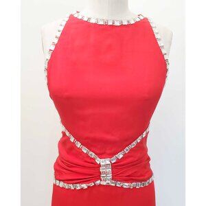 Carolyne Roehm Vintage Womens Red Sleeveless Maxi Gown Dress Sequin Crystal