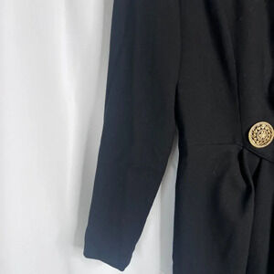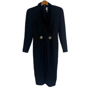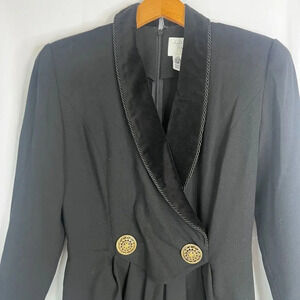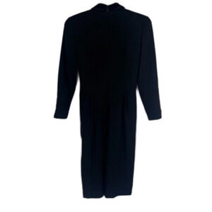 Caroma by Andree Devlin Vintage Black Tuxedo Deep V Dress 100% Wool Size 8