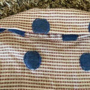 light and drapey cotton blend seersucker with polka dots against a striped ground