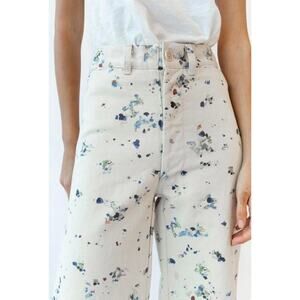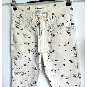 New With Tags - Est. Retail $375 Caron Callahan Stewart Pants in Painter Print Modified from a classic sailor pant with slimming straight fit through the hips and waist. Slightly cropped leg with button front closure. Fabric is a cotton denim from with unique "painter print." Made by Caron Callahan in NYC CONTENT & CARE: 100% Cotton, Fabric from Portugal Machine wash cold, lay flat to dry Waist flat - 13.25" Rise - 10.5" Inseam - 26" Great condition, no stains or tearing