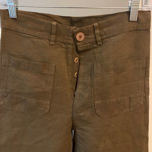 High waisted denim sailor pants, with a slightly cropped wide leg and front button closure.