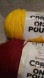Caron One Pound yarn in vibrant yellow and deep red. Perfect for knitting and crochet projects.