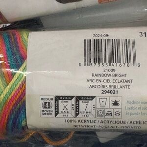 The Caron Simply Soft Paints Yarn Medium#4 in Rainbow Bright is a 5-pack of 100% acrylic yarn skeins. This yarn is from Caron's Simply Soft Paints line, known for its soft feel and vibrant colors. The medium weight yarn is easy to work with and perfect for various crafting projects, including knitting and crocheting. With the rainbow bright color palette, this yarn is sure to add a pop of color to any project.