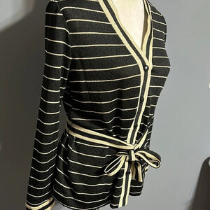 Excellent vintage condition. Button front sweater with original belt. Long sleeve. Sizing tag material tag missing. Please see measurements I would say fits a small to medium.