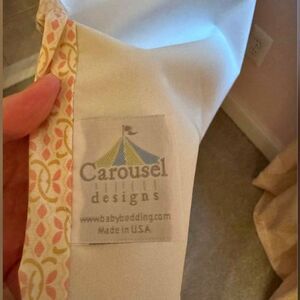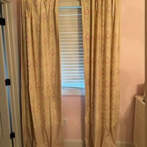 Carousel Designs blush pink and green tie-top blackout lined drapes 41 by 84