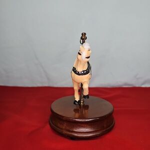 Carousel Horse Music Box Ceramic Vintage ROC Taiwan Working Wooden Base