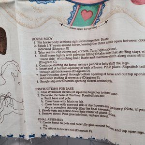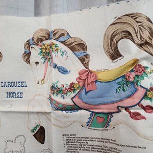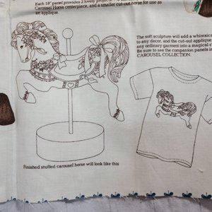 VINTAGE!!!***THIS LISTING IS CROSS-LISTED***This is the Carousel Horse Fabric/Craft Panel + Applique, so you get 2 projects!! There are companion panels from the Carousel Collection by Cranston VIP, you just have to research this as some things may not be available or out of print. This is so cute and would look absolutely adorable in a little girl's room. The colors are multicolor and soft. The craft panel could be used for a soft sculpture, a pillow, quilting. There are many possibilities. The applique could be used on a child's shirt or part of a quilt. I took several pictures, so you are able to zoom in on them. Some will overlap. The size of the entire panel is 171/2 " length x 44" wide. The creases/folds are simply from being folded and stored covered in my home. If you have any questions about anything, please ask!!