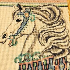 Carousel Horse Cross Stitch Embroidery Vintage Framed Completed 14.5'' x 18.5''