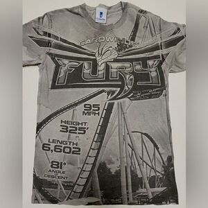 Carowinds Men’s Unisex Gray|Black Fury Rollercoaster Graphic Shirt Sz S