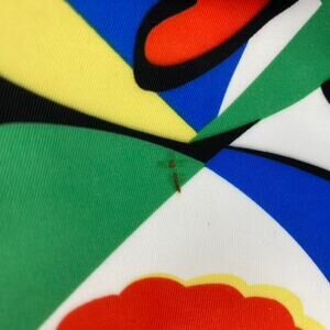 The perfect fun summer tote bag. Zip closure with exterior snaps to adjust the size. Includes an attachable shoulder strap. Measures 17" x 6" and 14" high. Interior is very clean, there are some marks on the exterior that may wash out, please refer to photos.