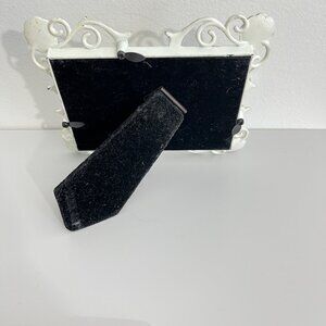 ornate picture frame, dual photo frame, vintage style, floral metal frame, white photo display, table decor frame, Carr frame, 2x3 photo frame, vintage home decor, metal photo frame, decorative frame, white tabletop frame, easel back frame