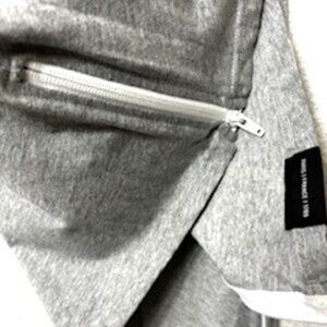 Carré Paris "Gray Marle" short sleeved t-shirt with 2" white stripe on each sleeve and a 4" white stripe onto which the 2" logo is embroidered in a thin black thread with Carré on the front and Paris on the back. Each side has a 6" white zipper to customize the look and fit. Measures appx 31-1/4" from shoulder to end of hemline and the chest measures appx 17-1/2" across, lying flat. Their website self describes the brand "is a Parisian streetwear powerhouse. From Innovative t-shirts, stylish track pants, and more." NWT