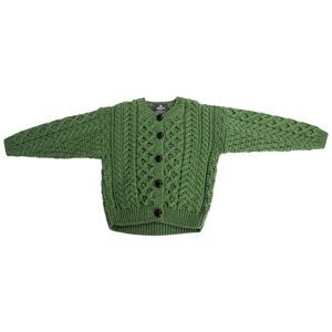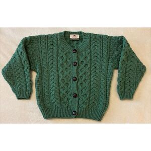 Carraig Donn Cardigan Sweater Green Youth Kids Merino Wool M (5-6 Yrs) Ireland