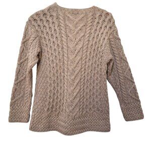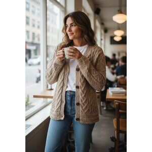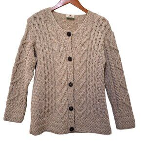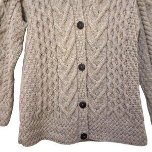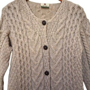 Carraig Donn Ireland Merino Wool Chunky Cable Knit Cardigan Womens L Beige