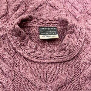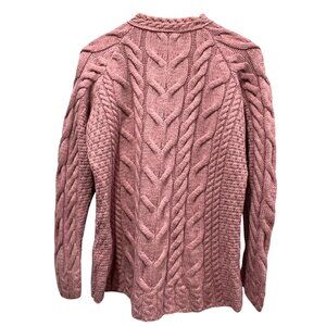 Carraig Donn Irish Wool Cable Knit Sweater, Pink XXL