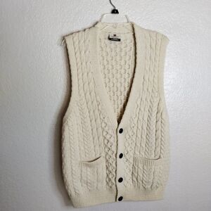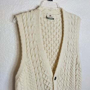 Carraig Donn Irish wool sleeveless sweater vest Ivory sz L