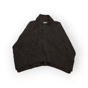 Carraig Donn Pure New Wool Poncho Fisherman Cable Knit Cape One Size