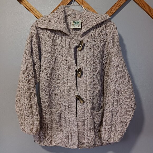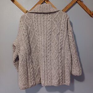 Carraig Donn Pure Wool Cable Knit Shawl Fisherman Sweater Toogle Cardigan XL