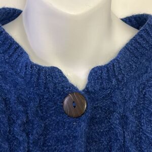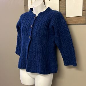 Carraigdonn Made in Ireland Blue Fit Flare Cable Knit 3/4 Sleeve Merino Wool Cardigan-Small