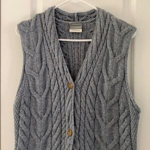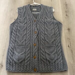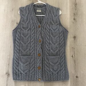 Carraigdonn Made in Ireland Rare Merino Wool Sweater open cardigan vest gray M
