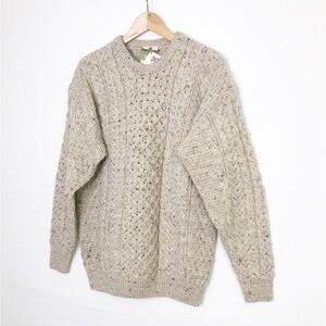 Carraigdonn tan Cable knit wool crew, neck pull over sweater