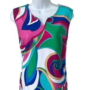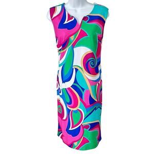 Carre Noir Dress Size S/P Sheath Jersey Knit Bamboo Cotton Stretch Colorful Print