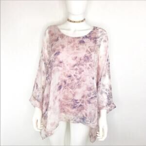 Chiffon Watercolor Tunic Boho Blush Pink Tunic Blouse with tank top with Dolman Sleeves