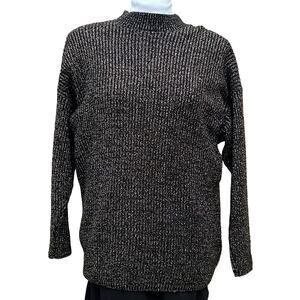 Long Sleeve Acrylic Black and Silver Tweed Sweater. Pit to Pit 25". Length 30". Item 483