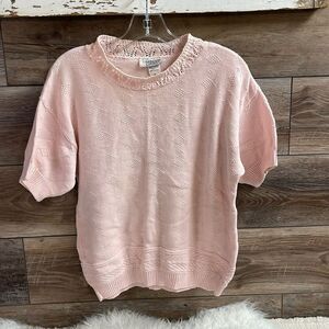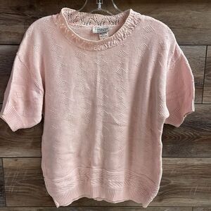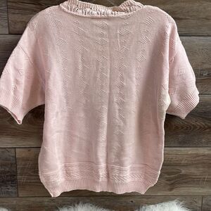 Carriage Court Vintage Ladies Pink Embroiderd Boxy Sweater, Size Medium