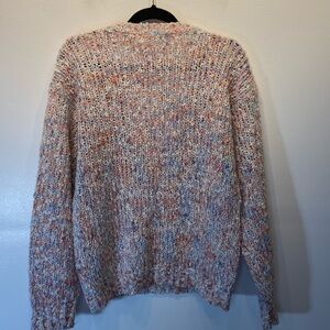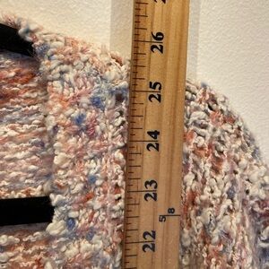 Carriage Court Women’s Wool Blend V-Neck Sweater. Pink Multicolor. Size Large. Measurements added in images. 90% acrylic, 5% wool, 5% nylon. Made in Taiwan. Used like new.