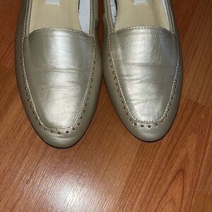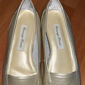 Carriage Court women’s golden leather flats with gold accents Size 7.5