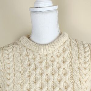 Carriage Donn Beige 100% Merino Wool Fisherman's Sweater Sz S