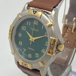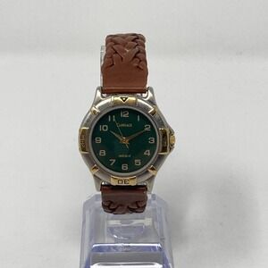 Carriage Timex Watch Women 32mm Silver Gold Tone Green Dial Braided New Battery