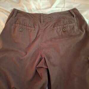 Stylish and versatile women's brown cropped cargo pants by Caribbean Joe. Perfect for casual outings and everyday wear. Size 4P. waist side to side measures 15 inches. length 29 inches. inseam 19 inches.