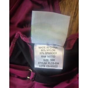 NWOT. No damage of any kind. Measures 17" pit to pit & 21" shoulder to hem. Front & sides are ruched for contouring, cupped padding, adjustable straps & full coverage on bottom. Comes from a smoke-free / pet-free home.