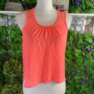 Carrie Allen Cropped Shear Peach Studded Lightweight Top small