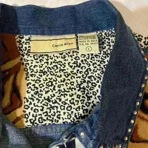 This is a beautiful Carrie Allen jean jacket. Adorned with bling buttons and adorable animal print. Fabulous condition! Size Large.