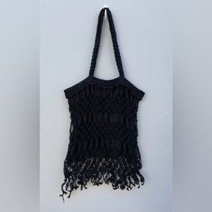 Carrie Forbes Crochet Rayon Fringe Bag Black Purse Hippie Boho Gypsy Festival
