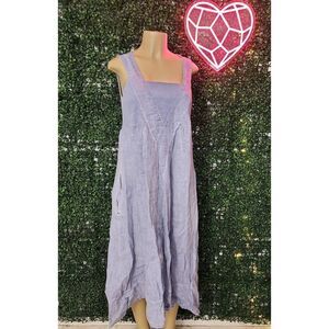 Cotton linen tank dress with front pocket. Small rip near pocket